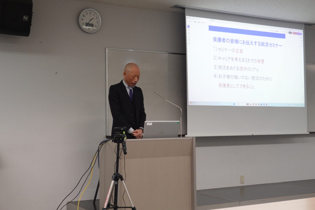 先生から、早期化している就職活動の実情や、保護者として、就職活動中の学生への具体的な接し方やサポート方法等を分かりやすく説明いただき、大変有意義な時間となったと思います。